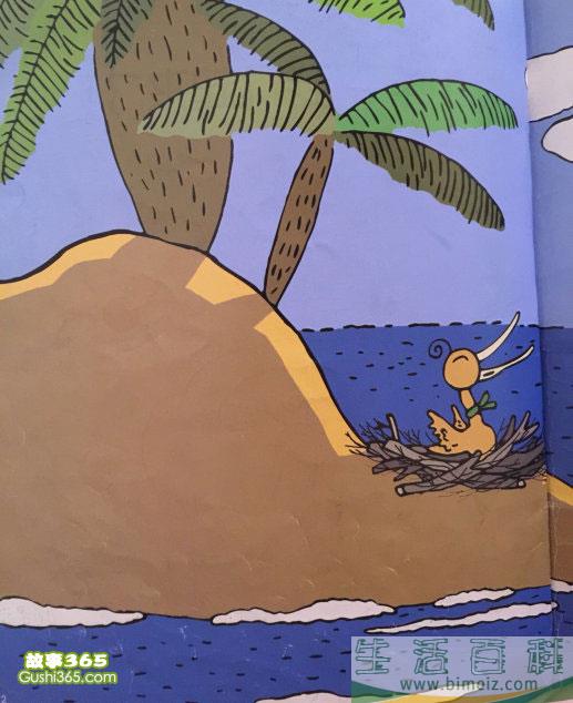 一只小鹈鹕小的时候不会飞,每天都待在窝里等着妈妈飞到远处捕鱼回来喂它。